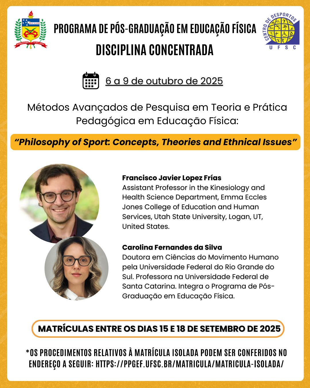 📚 Philosophy of Sport: Concepts, Theories and Ethnical Issues🗓 6 a 9 de outubro de 2025